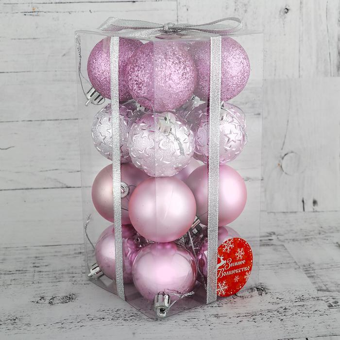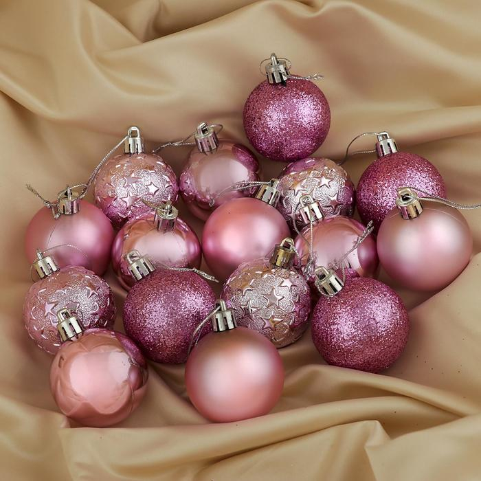 Набор шаров пластик d-5 см, 16 шт "Звёздная ночь" розовый