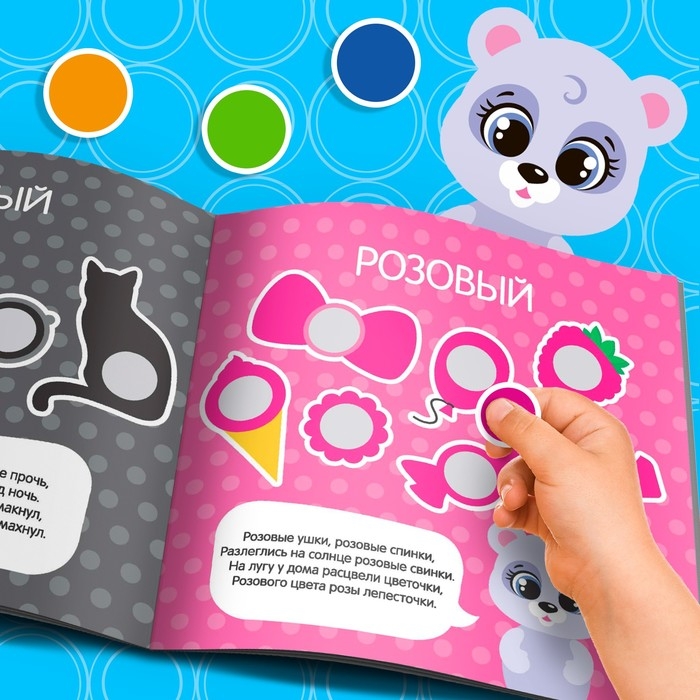 Книга с наклейками-кружочками создана для самых маленьких читателей. Приклеивая яркие кружочки, ребёнок узнает многое об окружающем его мире и потренирует ловкость пальчиков, внимательность и аккуратность.