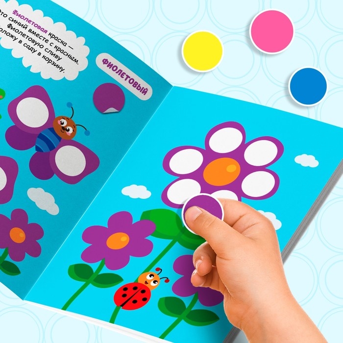 Книга с наклейками-кружочками создана для самых маленьких читателей. Приклеивая яркие кружочки, ребёнок узнает многое об окружающем его мире и потренирует ловкость пальчиков, внимательность и аккуратность.