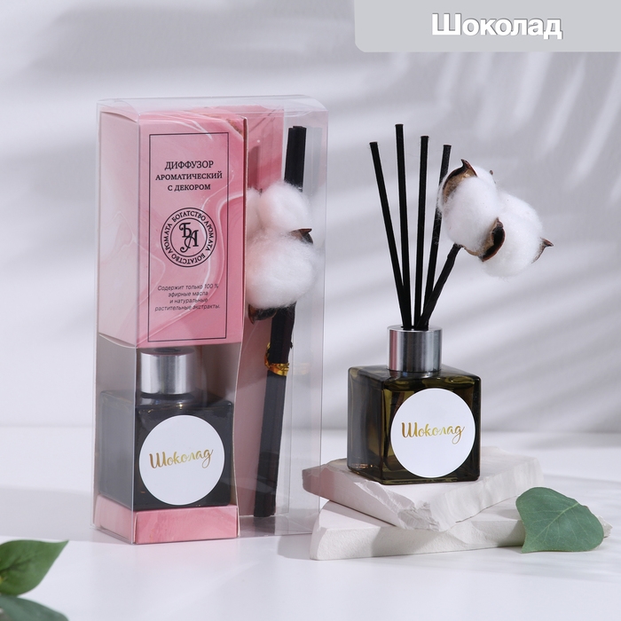 Диффузор ароматический с цветком хлопка "Нежный", 50 мл, шоколад, "Богатство Аромата"