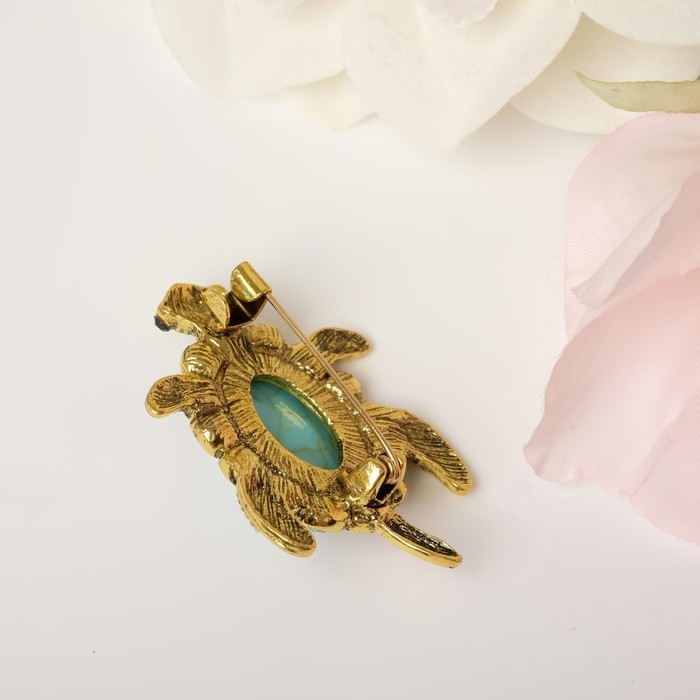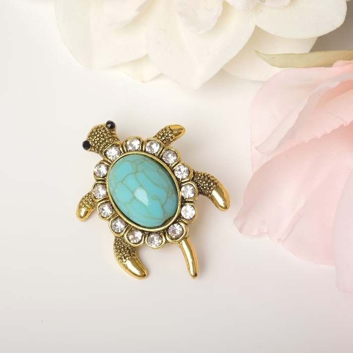 Брошь «Черепашка» панцирь под бирюзу, цвет голубой в чернёном золоте