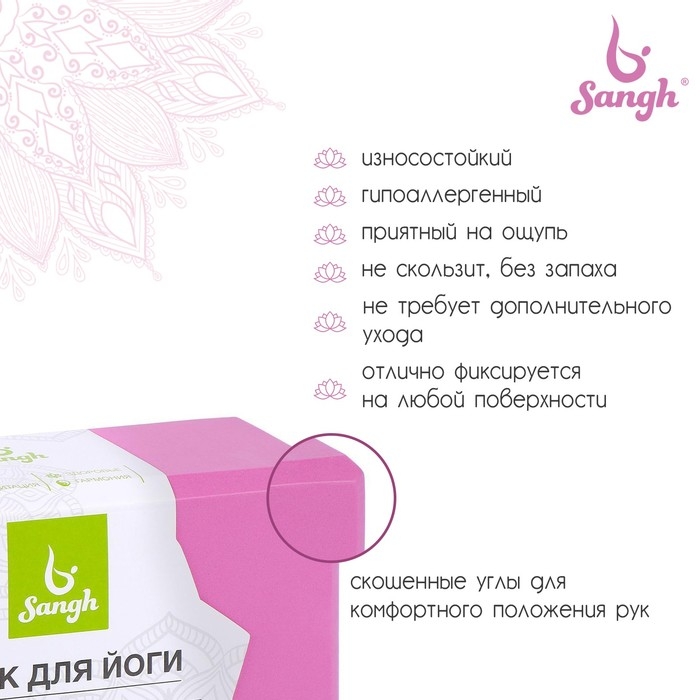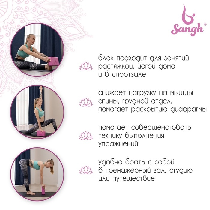 Блок для йоги Sangh, 23×15×8 см, цвет розовый