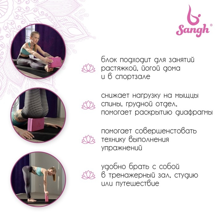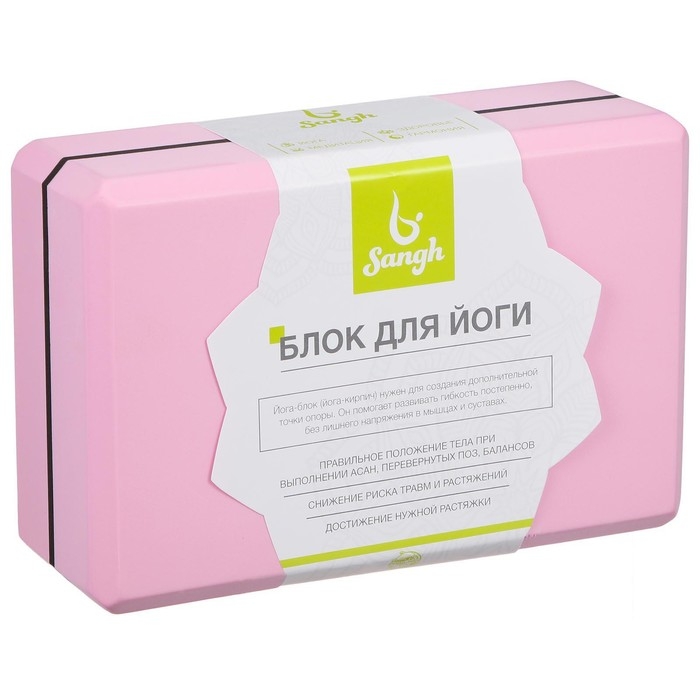 Блок для йоги Sangh, 23×15×8 см, цвет розовый