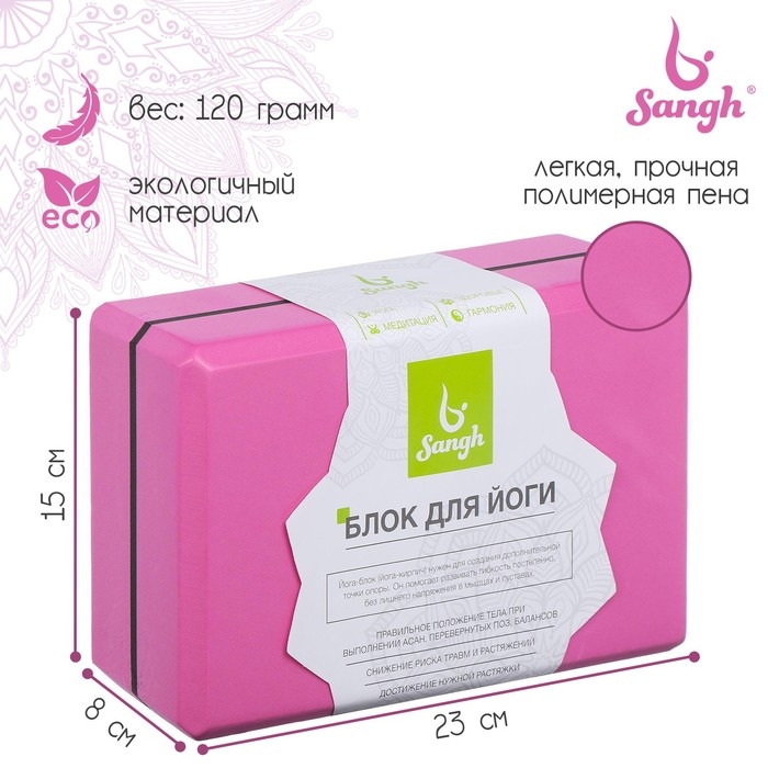 Блок для йоги Sangh, 23х15х8 см, цвета МИКС