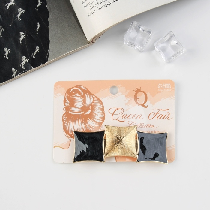 Заколка-автомат для волос "Геометрия" три квадрата, 7,5 см, тёмная эмаль
