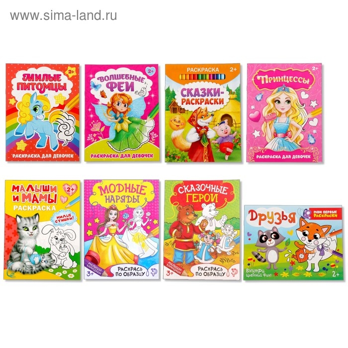 Раскраски набор «Для девочек», 8 шт. по 12 стр.