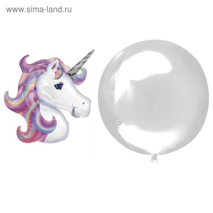 Шар полимерный 18" «Единорог», шар в шаре, с палочкой, цвет фиолетовый