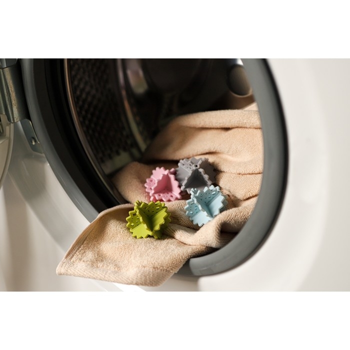 Просто закидываем шарики в барабан машинки во время стирки. Работают они по такому принципу: попадают между стирающимися вещами, поднимают и разделяют их, давая возможность воздуху, воде и чистящему средству свободно циркулировать. Также они ударяются об вещи, как бы «колотят» их, что производит дополнительное механическое воздействие на изделие, улучшает стирку и ускоряет сушку.