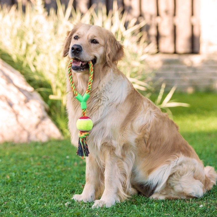 Игрушка тренировочная канатная с мячом, до 125 г, до 45 см, микс цветов