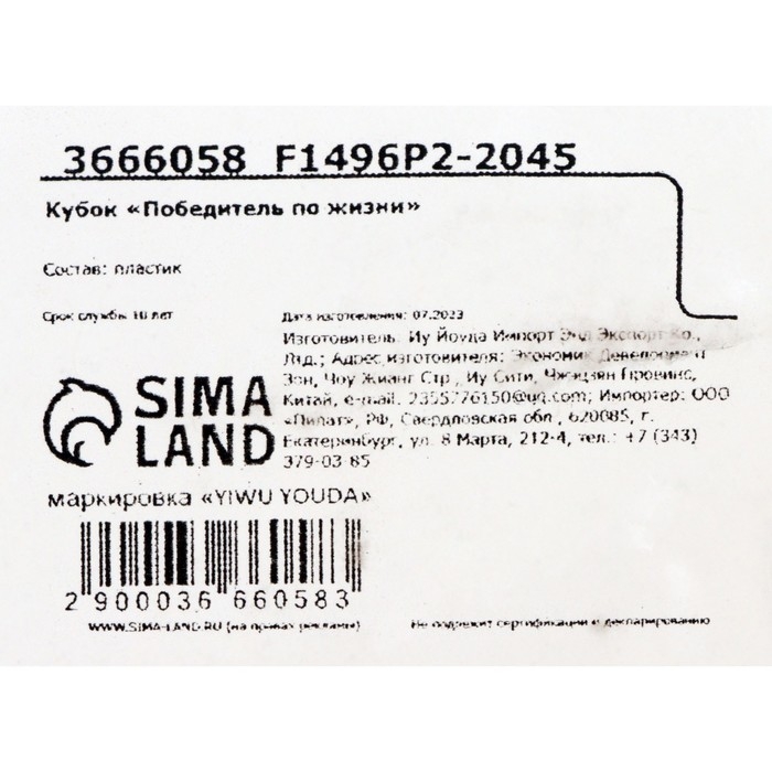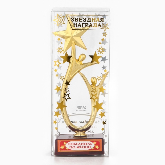 Кубок «Победитель по жизни», наградная фигура, золото, пластик, 18 х 7 см.