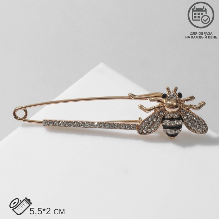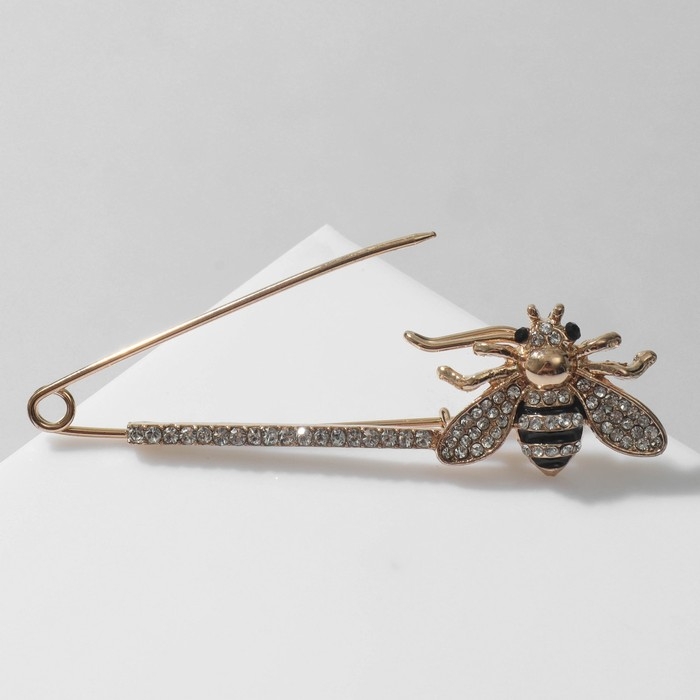 Данная булавка – настоящая находка для модниц, предпочитающих нетривиальные аксессуары. Брошь-булавка станет не только оригинальным дополнением вашего наряда, но и позволит без труда приколоть при необходимости палантин или шейный платок. Используйте её в качестве украшения шляпки, рубашки или галстука. Булавка «Пчела» со стразами, 5,5 см, цвет чёрно-белый в золоте внесёт особую нотку изящности в ваш образ.