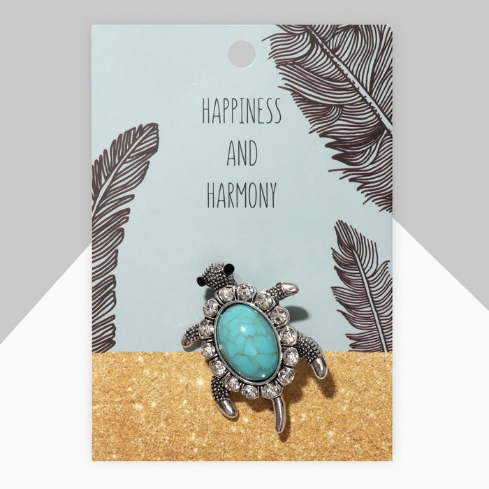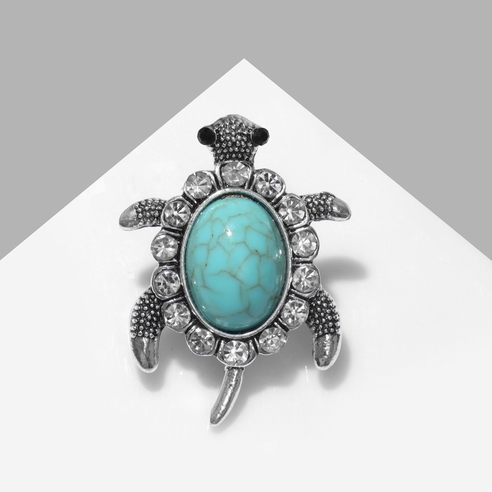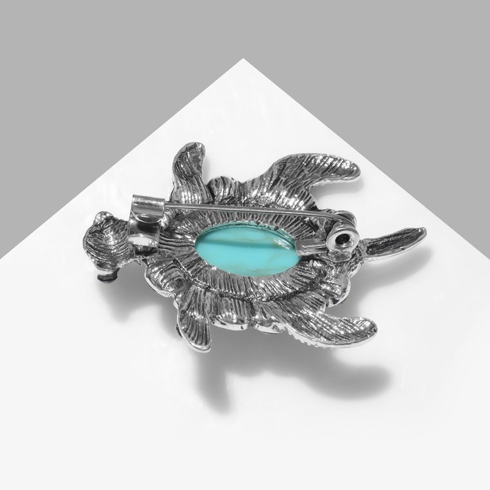 Брошь «Черепашка» панцирь под бирюзу, цвет голубой в чернёном серебре