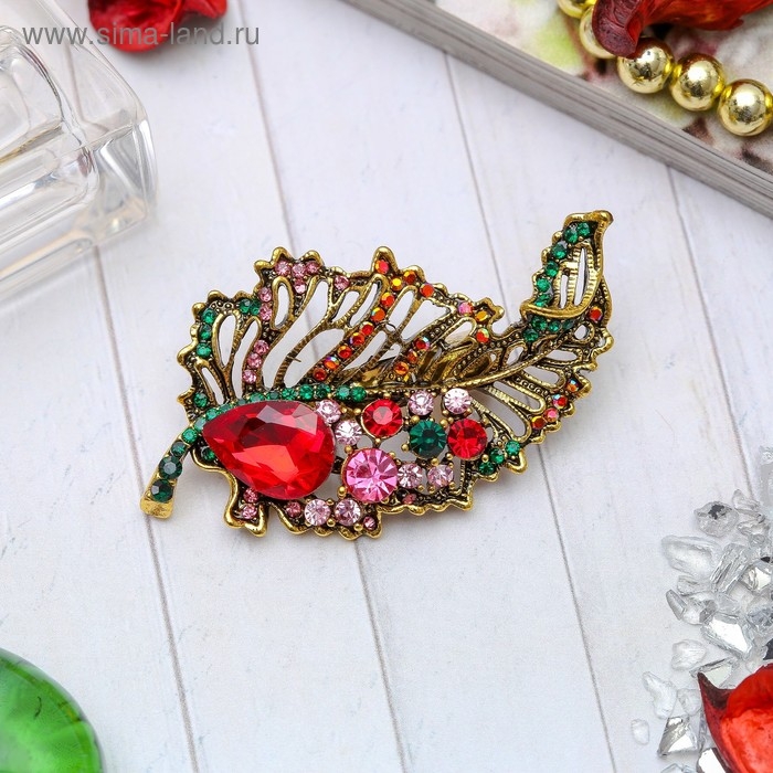 Брошь «Лист осенний» ажурный, цветная в чернёном золоте
