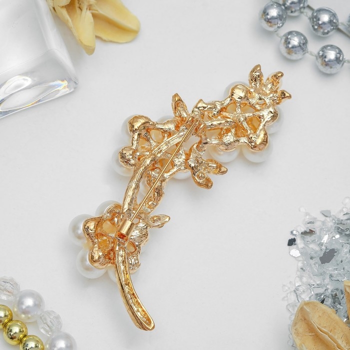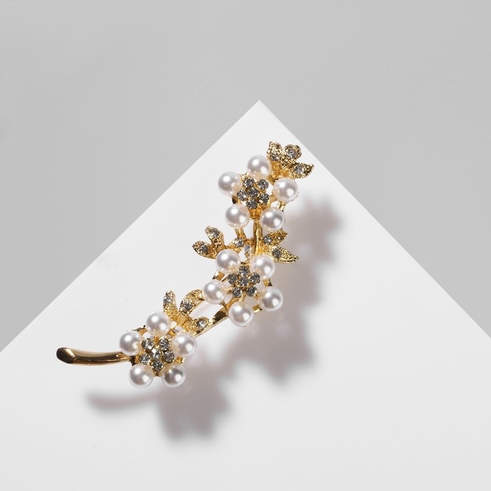 Брошь «Цветочное трио» жемчуг, цвет белый в золоте
