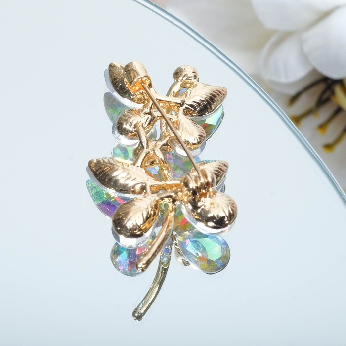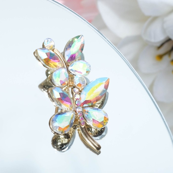 Брошь «Бабочки» парочка, цвет радужный в золоте