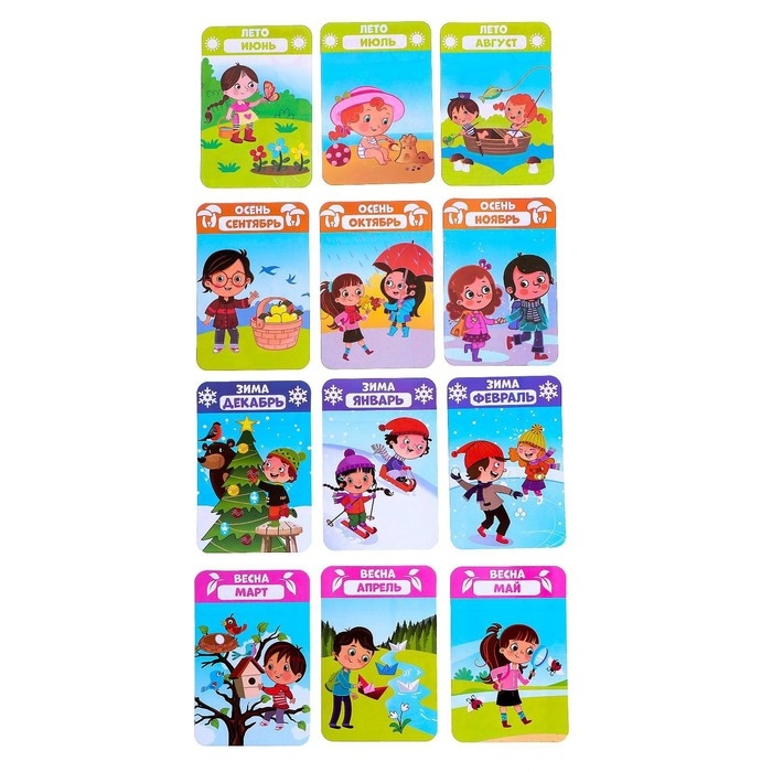 «Изучаем время» — развивающий набор для детей от 3 лет. С обучающими часиками ребёнок научится определять время, а с помощью ярких карточек узнает о распорядке дня, запомнит месяцы и времена года.