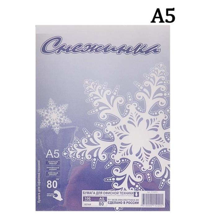 Бумага А5 100 листов "Снежинка" класс С, блок 80г/м ², белизна 146% (цена за 100 листов)
