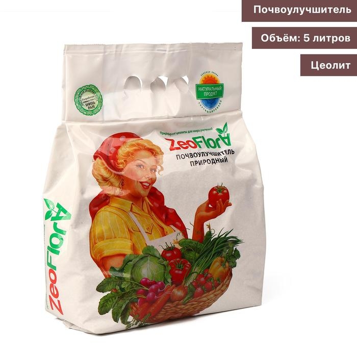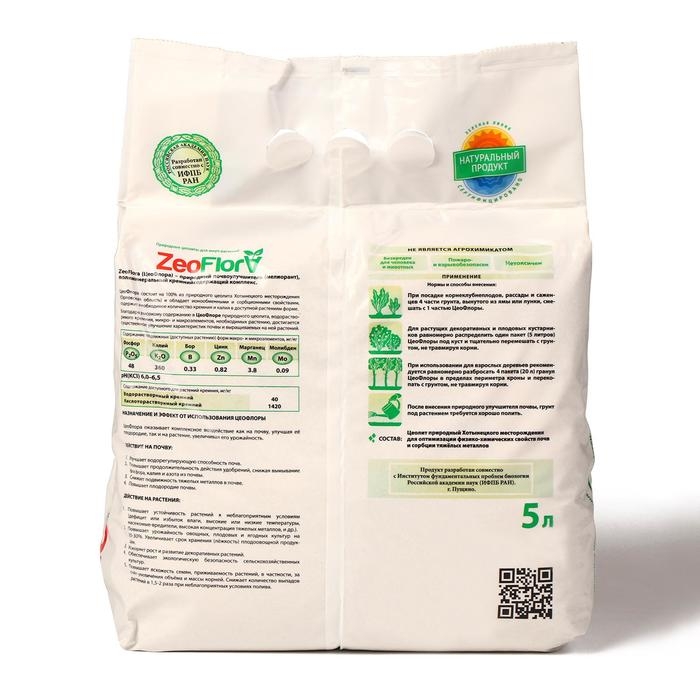 Субстрат осадочный минеральный ZeoFlora, цеолит, почвоулучшитель для растений, 5 л, фракция 1-3 мм