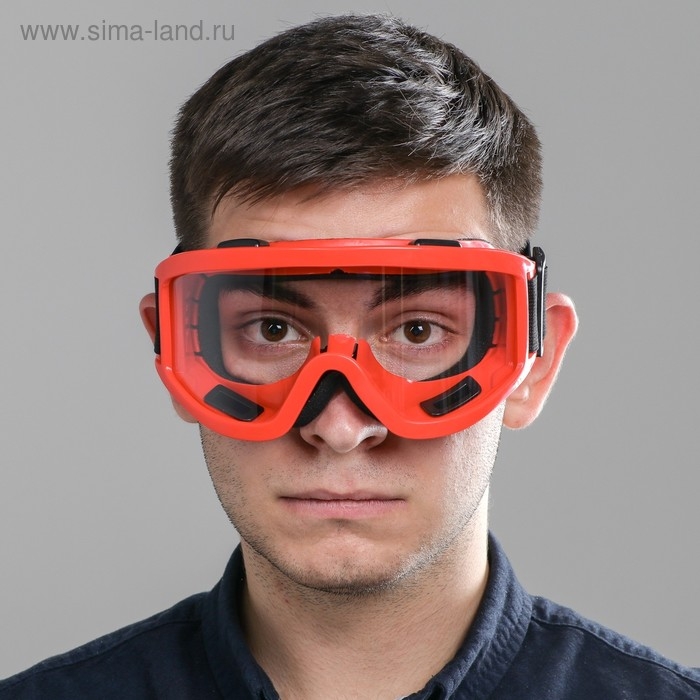 Очки-маска для езды на мототехнике, стекло прозрачное, цвет красный