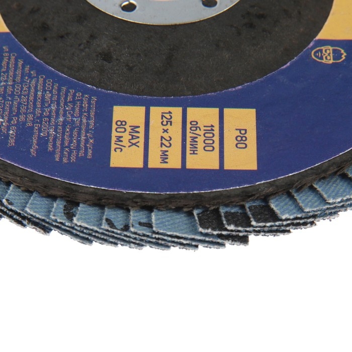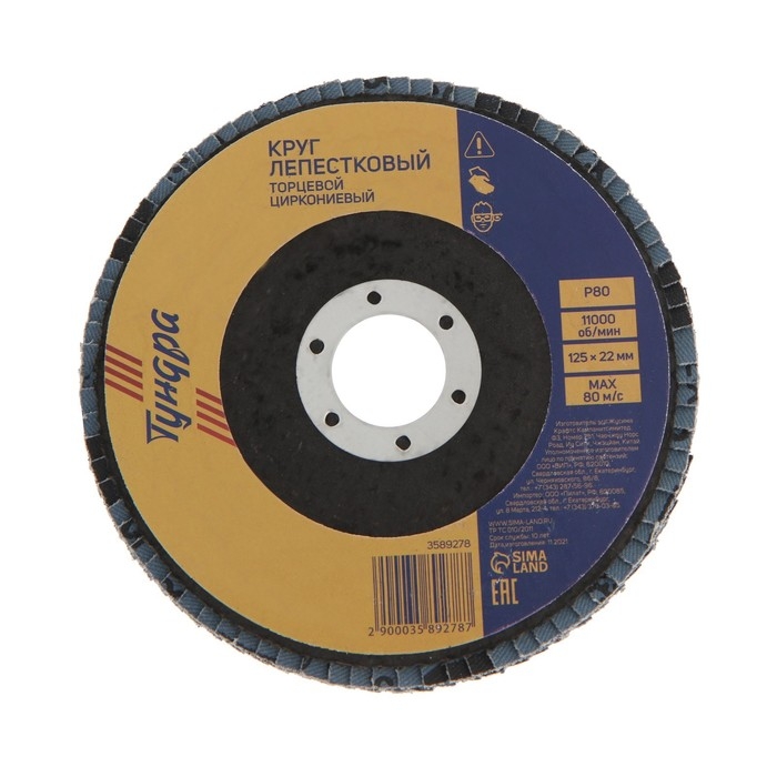 Круг лепестковый торцевой ТУНДРА, циркониевый (по нержавеющей стали), 125 х 22 мм, Р80
