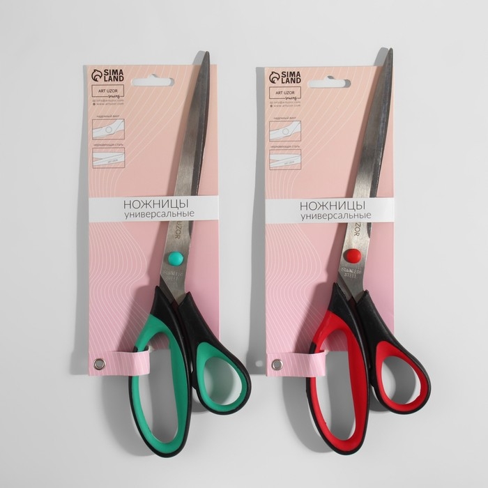 Универсальные ножницы подходят для работы с бумагой, картоном, полиэтиленом. Ножницы удобно лежат в руке, а их острые лезвия обеспечивают идеально ровный срез.