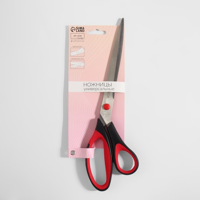 Ножницы универсальные, скошенное лезвие, 8,5", 21 см, цвет чёрный/красный
