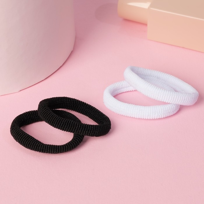 Резинка для волос "Махрушка" (набор 48 шт) 5,5 см, чёрный белый