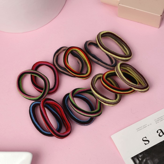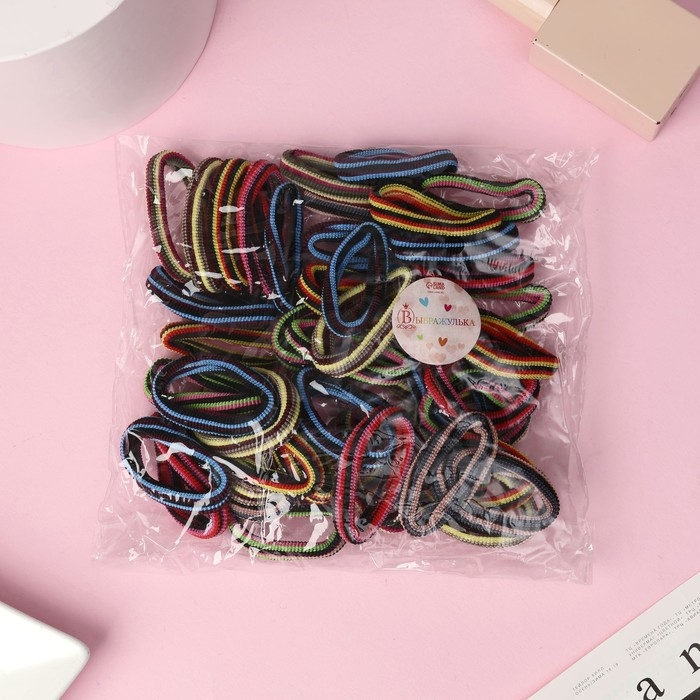 Резинка для волос "Махрушка" (набор 48 шт) в чёрную полоску, 5,5 см