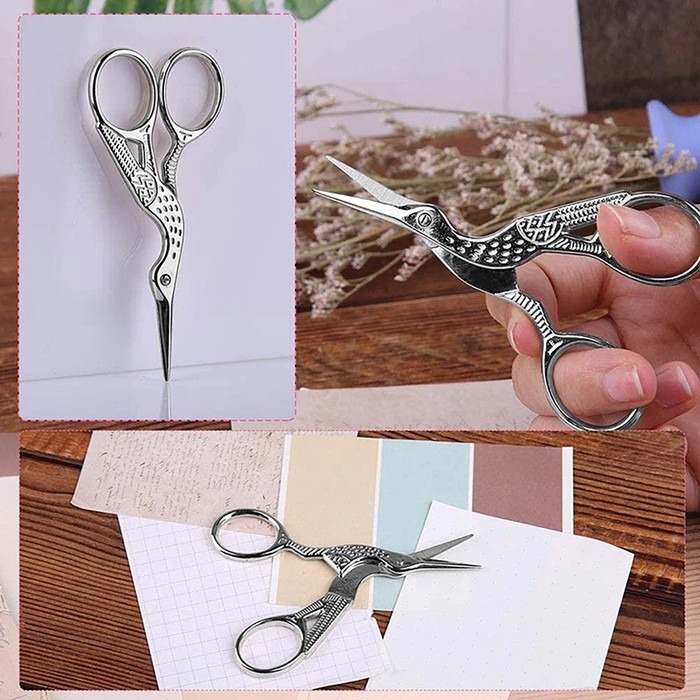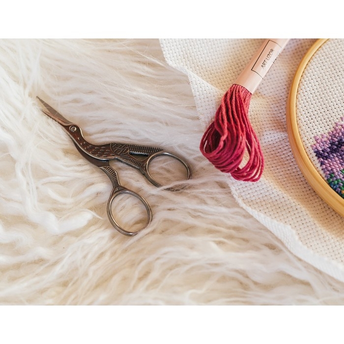 Стильные металлические ножницы с небольшими лезвиями помогут аккуратно обрезать нитки, края изделия и другие мелкие детали.