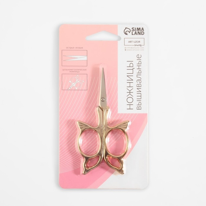Ножницы для рукоделия «Бабочка», скошенное лезвие, 3,5", 9 см, цвет золотой