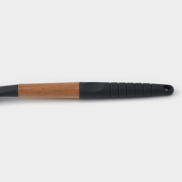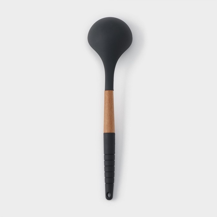 - Выполнен из экологичных материалов. Рукоятка разливной ложки выполнена из натурального дерева. Рабочая часть предмета - из термостойкого пищевого силикона.