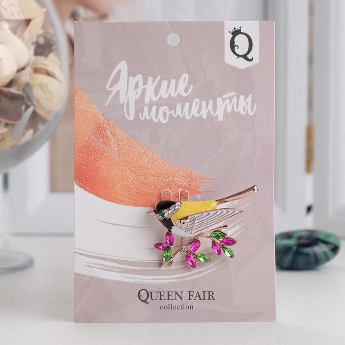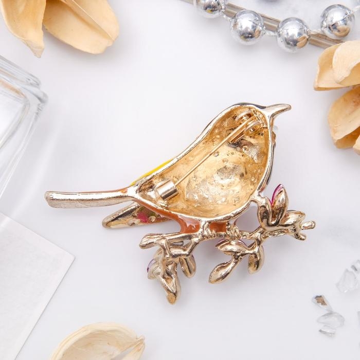 Брошь «Птичка-синичка», цветная жёлтый в золоте