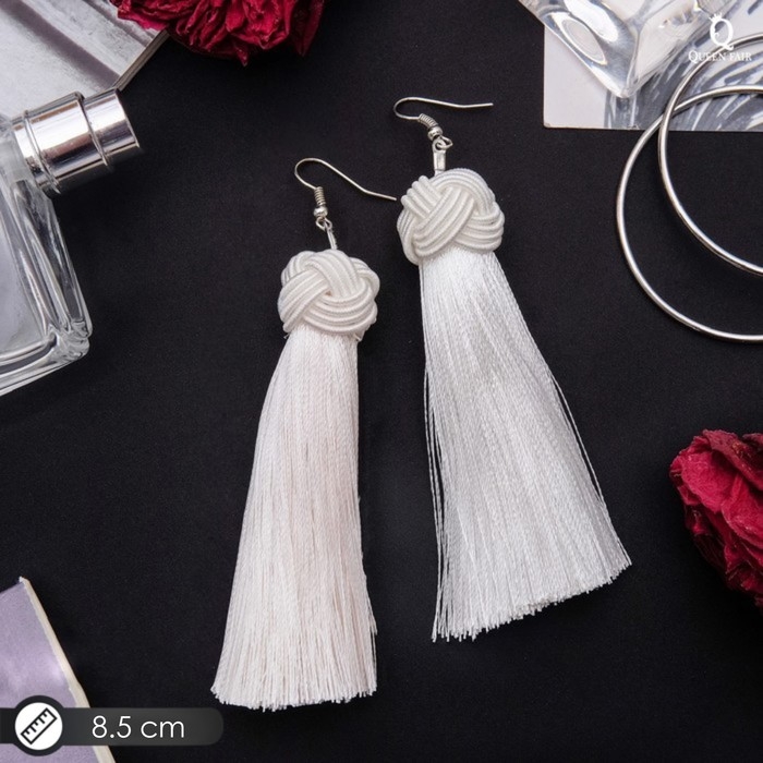 Серьги «Кисти» романс, цвет белый в серебре, длина кисти 8,5 см