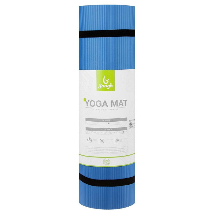 Коврик для йоги Sangh, 183×61×1,5 см, цвет синий