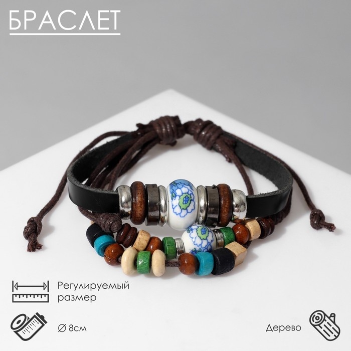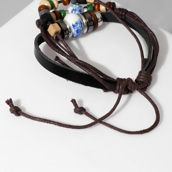 Браслет кожа «Настроение» бусины на нитях, цвет коричневый, d=8 см