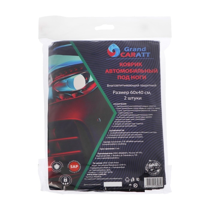 Одноразовый впитывающий коврик защитит салон автомобиля и вашу обувь от сырости, грязи, снега, противогололедных реагентов, следов нефтепродуктов. Суперабсорбирующий полимер (SAP) из Японии связывает более двух кружек жидкости в виде геля и блокирует неприятные запахи. Коврик не мешает ходу педалей и управлению автомобилем. Срок хранения: 5 лет.