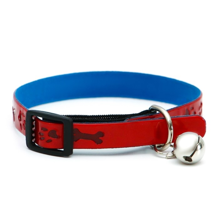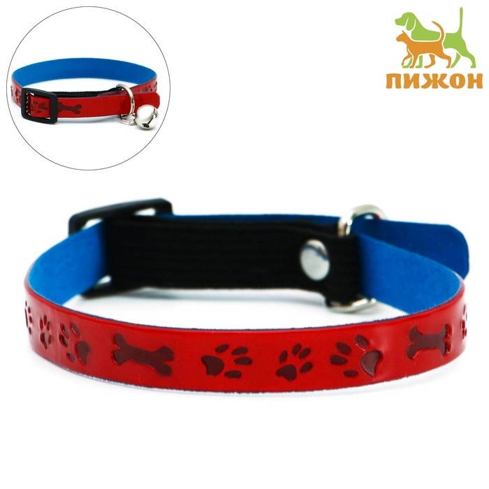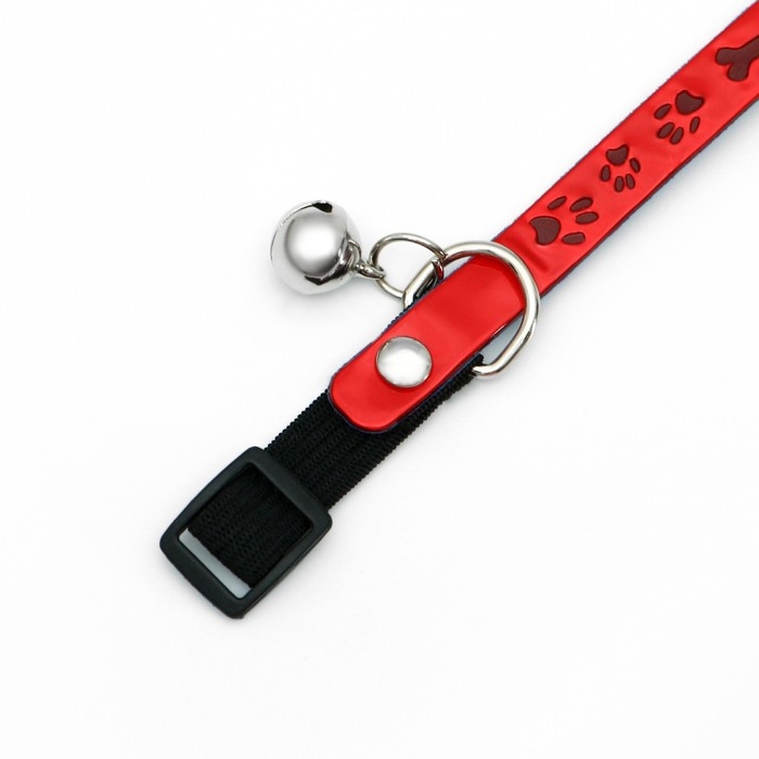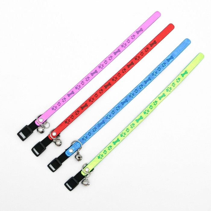 Ошейник со светоотражающим покрытием "Косточки и лапки", с резинкой, бубенчиком 27 х 1 см, микс цвет