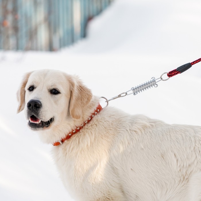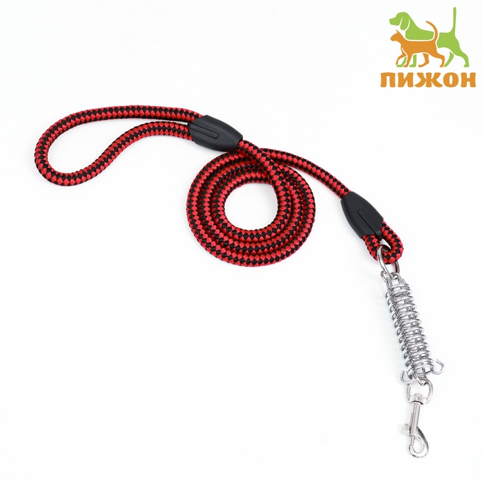 Поводок усиленный с амортизатором от рывка, 120 х 1,2 см, чёрно-красный
