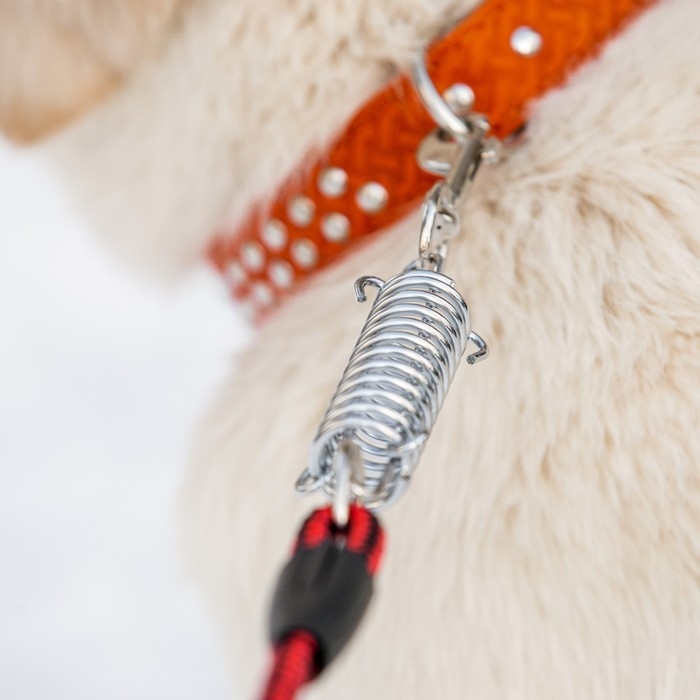Амортизатор от рывка позволяет смягчить удар при резком тяге собаки, что делает прогулку более комфортной и безопасной для животного и его хозяина.