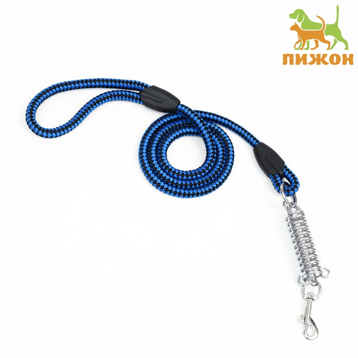 Поводок усиленный с амортизатором от рывка, 120 х 1,2 см, чёрно-синий
