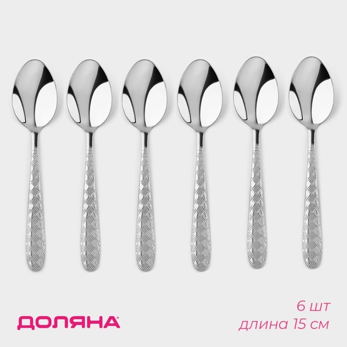 Набор ложек чайных из нержавеющей стали Доляна «Ромб», без золота, длина 15 см, 6 шт, цвет серебряный