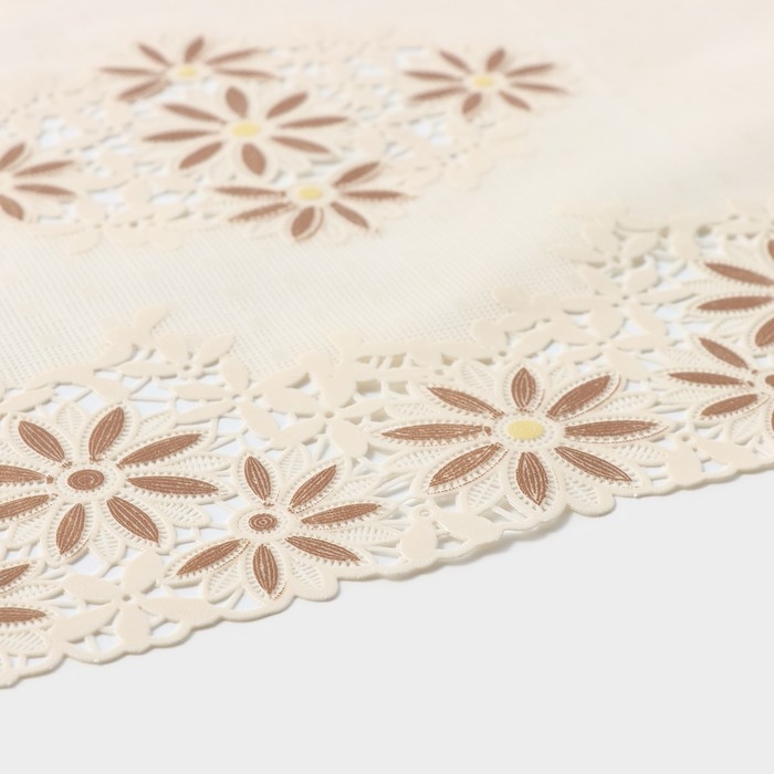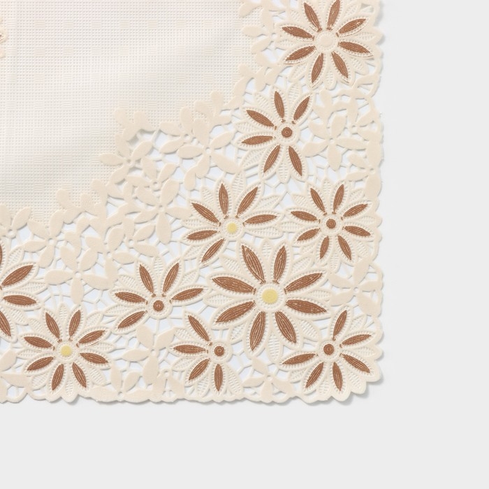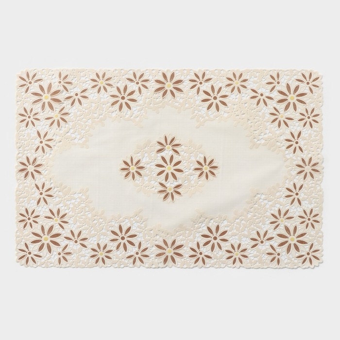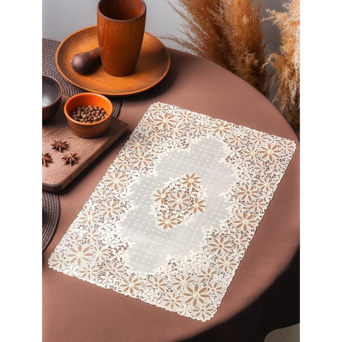 Салфетка ажурная для стола «Лютики», 45×30 см , цвет бежево-коричневый