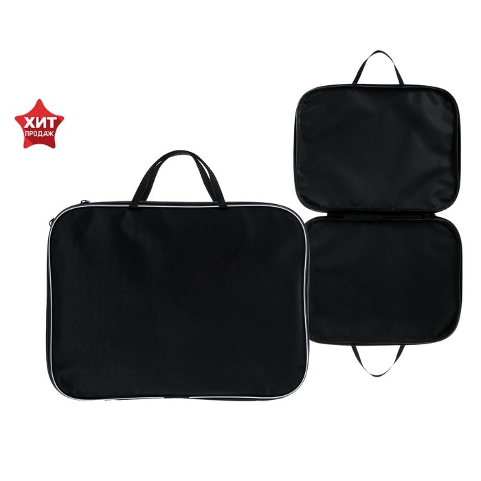 Папка с ручками текстильная А4, 350 х 270 х 20 мм, Calligrata "Офис", нейлон 600D, двуцветный кант, чёрная