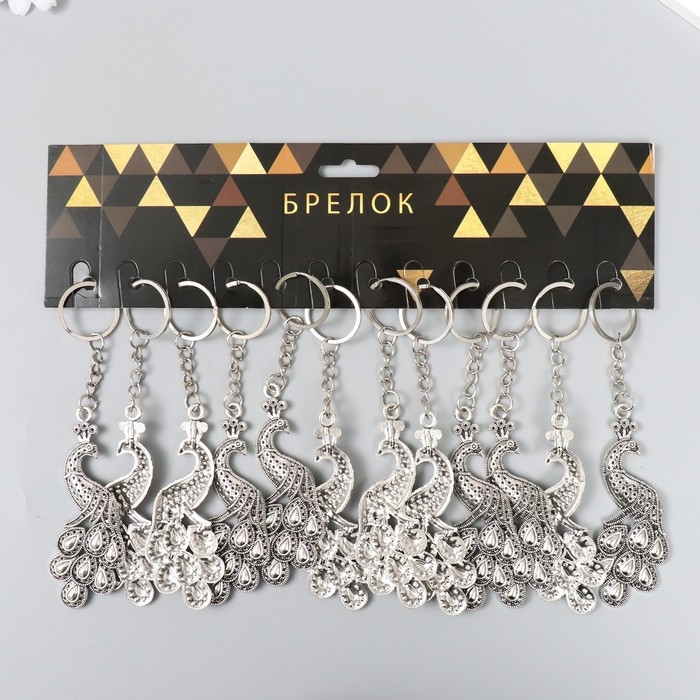 Брелок металл "Павлин" серебро/золото 7,2х3 см