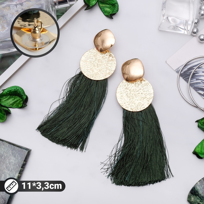Серьги «Кисти» романс, цвет зелёный в серебре, длина кисти 10 см