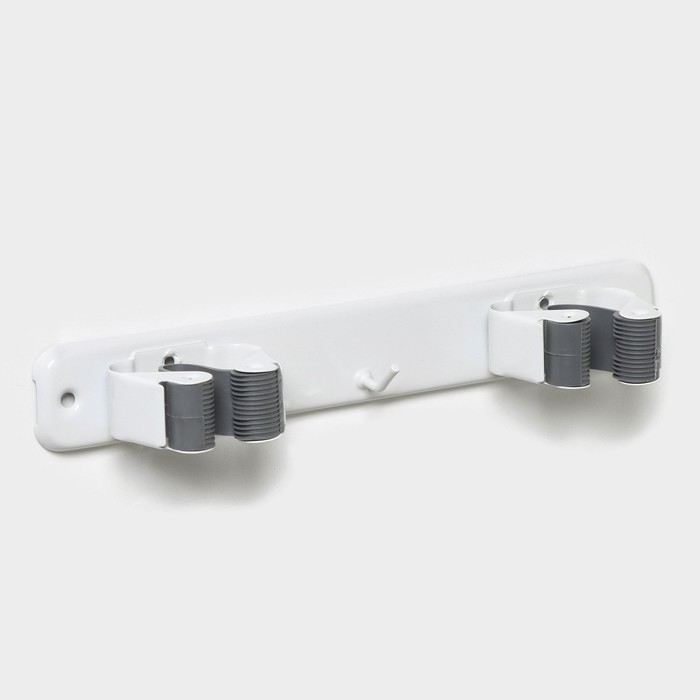 Держатель для уборочного инвентаря с крючками Доляна, 26×6×10 см, цвет серый