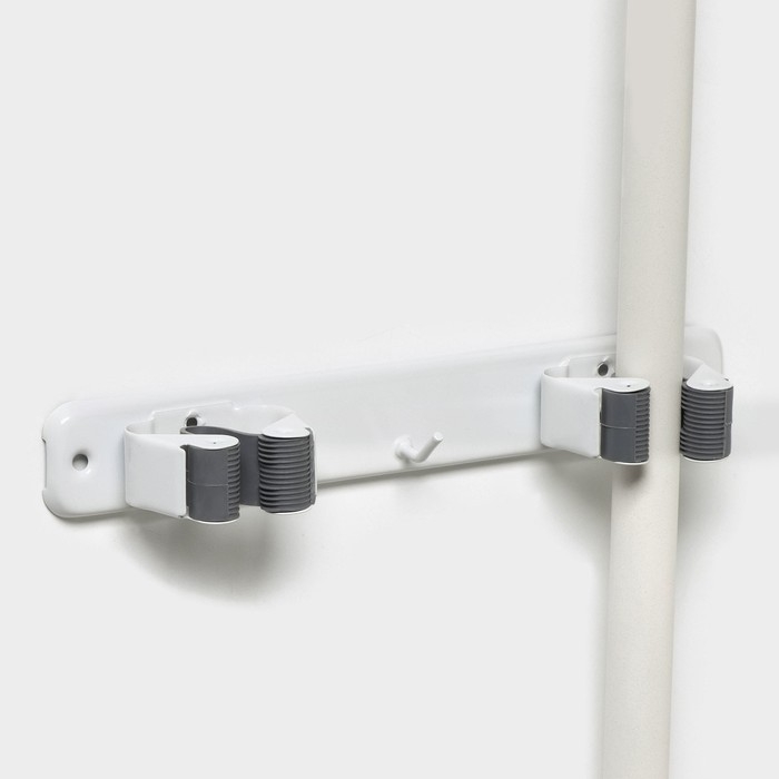 Держатель для швабр Доляна, 3 отделения, с крючком 22×2,5×5 см, цвет белый
