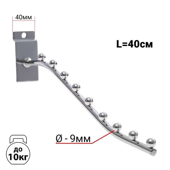 Кронштейн для экономпанелей, изогнутый, 9 шариков, d=9 мм, L=40 см, цвет хром