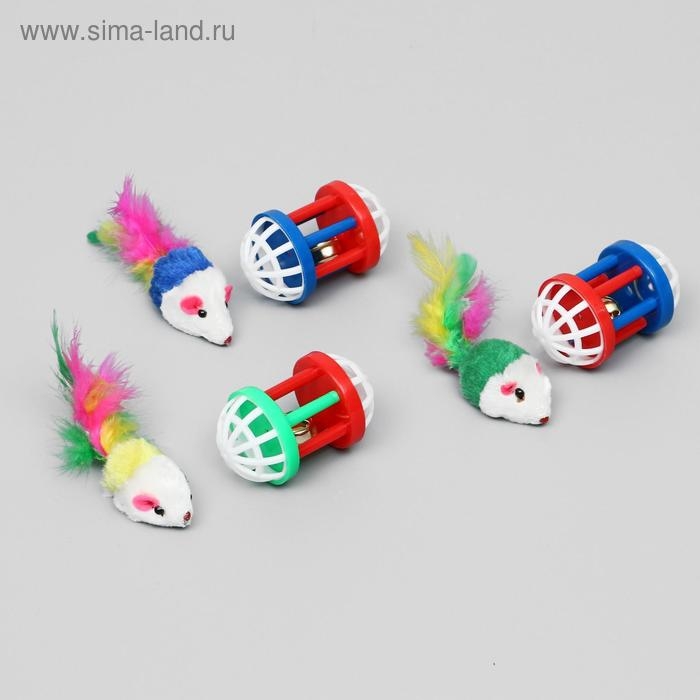 Набор игрушек для кошек: мышь 5 см и игрушка с бубенчиком "Амфитеатр" 6,8х4 см, микс цветов