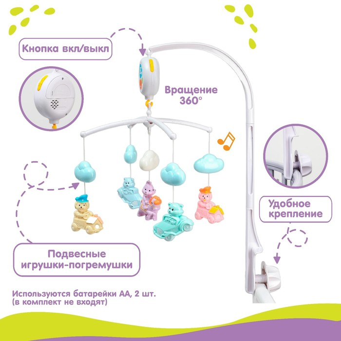 Мобиль музыкальный на кроватку «Облака. Машинки», работает от батареек, Крошка Я